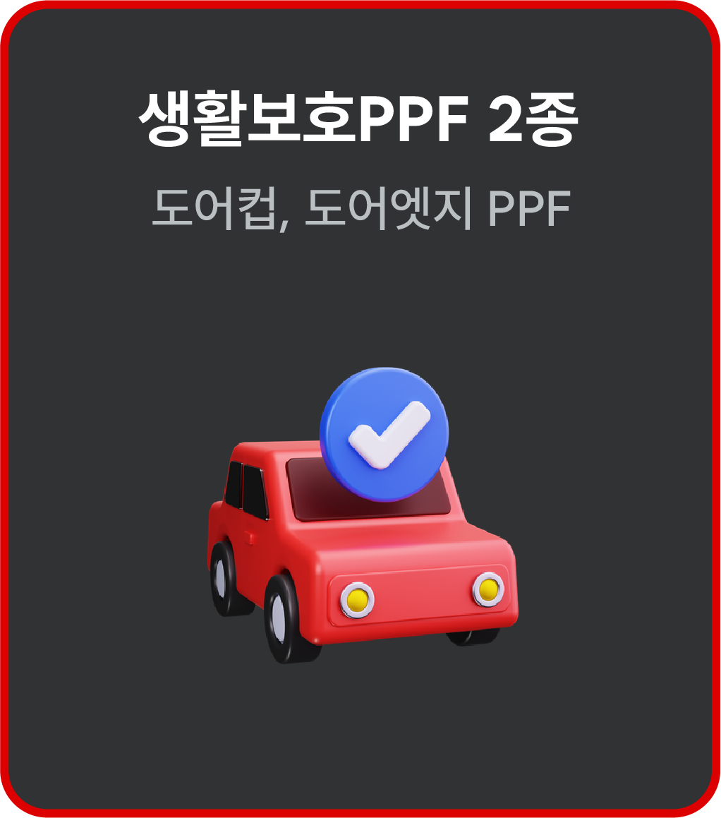 추가적으로 생활보호PPF 3종(도어컵, 도어엣지, 주유구), 유리막 코팅(바인더 에이스), 유리발수 코팅(파이어볼 글라스 쉴드)도 기본 제공되고 있습니다.